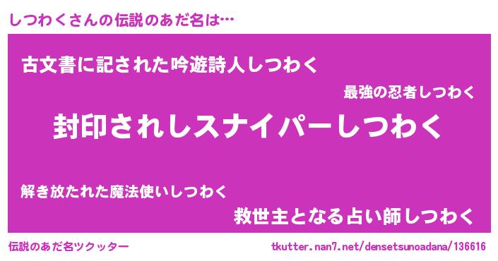 | 胡散臭い通販商品みたいなあだ名 | 『億万長者になれる霊験あらたかなお札…その名も「しつわく」』 |