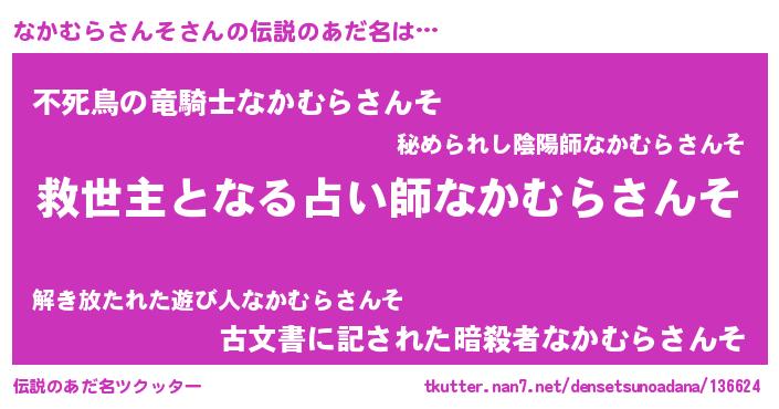 | ヘコむあだ名 | 『なかにゅー』『なかむらさんそ(爆)』 |