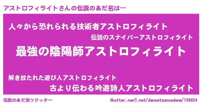 | 男性向けラノベタイトル風あだ名 | 『この素晴らしい世界にアストロフィライトを!』 |