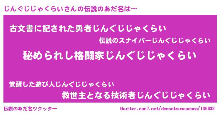 | ヒーロー風カッコイイあだ名 | 『ウルトラじんぐじじゃくらいマン』 |