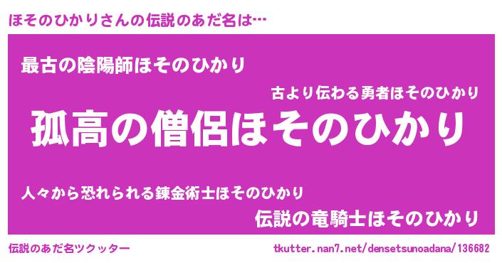 | 胡散臭い通販商品みたいなあだ名 | 『信頼と実績のネックレス…その名も「ほそのひかり」』 |