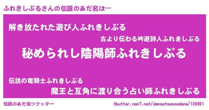 | 女子向けラノベタイトル風あだ名 | 『ふれきしぶるが死なない童話 林檎のふれきしぶるの診療簿』 |