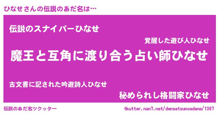 | ヒーロー風カッコイイあだ名 | 『友情の使者ひなせ』『仮面ヒナダー』 |
