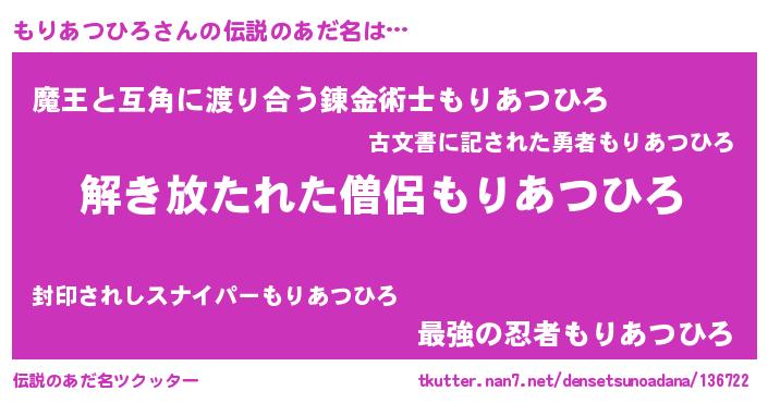 | 意味不明あだ名 | 『自称もりあつひろ』 |