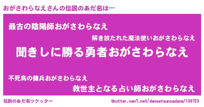 | 意味不明あだ名 | 『住所不定無職おがさわらなえ(93歳)』 |