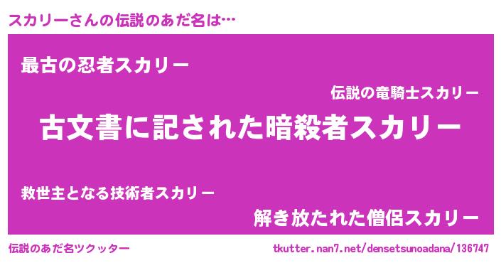 | 男性向けラノベタイトル風あだ名 | 『Re:スカリーから始める異世界生活』 |