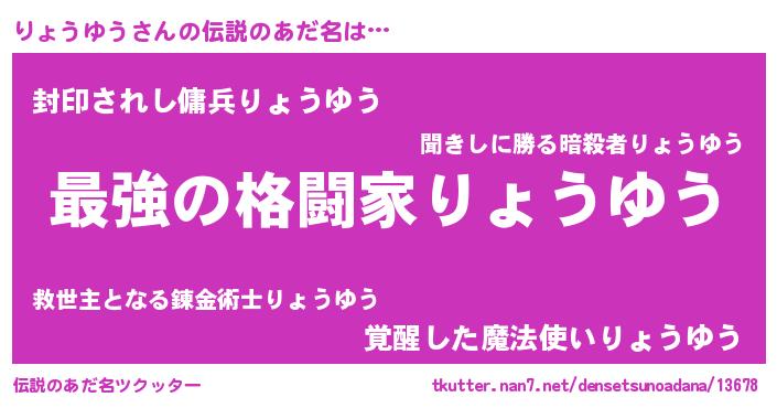 | ファンタジー風あだ名 | 『エターナルリョウユウー』『リョフェル』 |