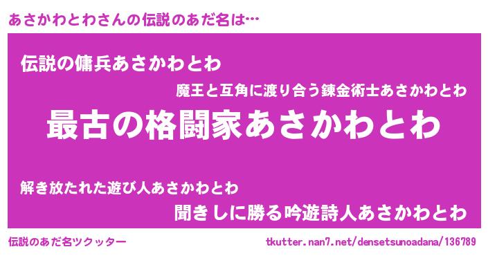 | 意味不明あだ名 | 『あさかわとわフォーエバー』 |