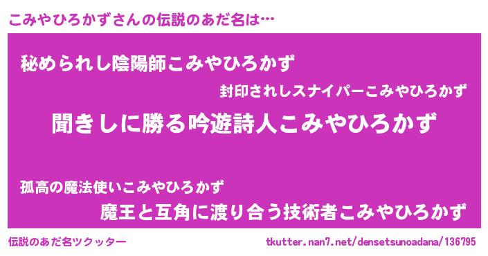 | 意味不明あだ名 | 『永久保存こみやひろかず』 |