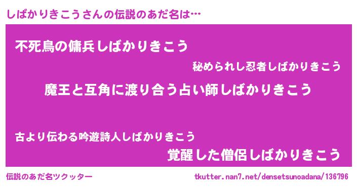 | ヒーロー風カッコイイあだ名 | 『友情の使者しばかりきこう』 |