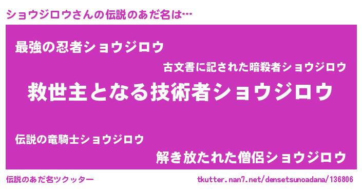 | ヒーロー風カッコイイあだ名 | 『天空の使者ショウジロウ』 |
