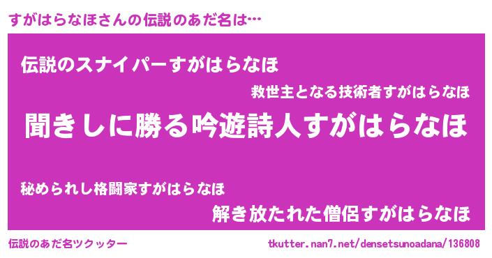 | ヘコむあだ名 | 『すがはらなほ(小並感)』『すがもー』 |