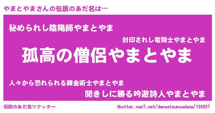 | 男性向けラノベタイトル風あだ名 | 『ヤマトヤマスレイヤー』 |