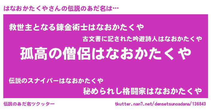 | 意味不明あだ名 | 『自称はなおかたくや』 |