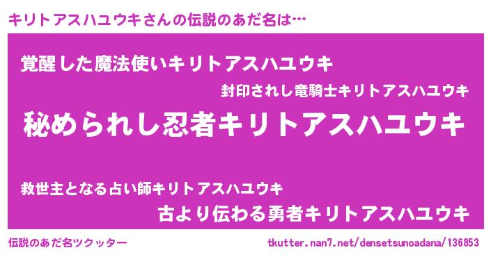 | 欧米人風あだ名 | 『キリトアスハユウキクリステル』 |
