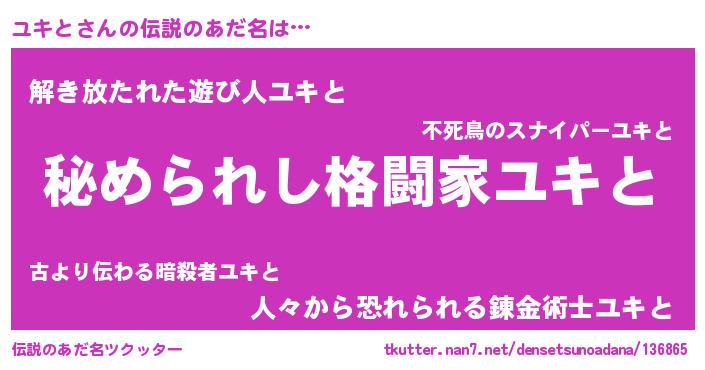 | ファンタジー風あだ名 | 『エターナルユキトー』『クインユット』 |