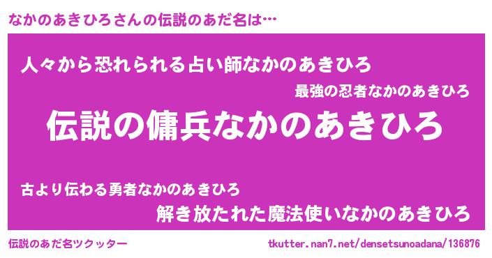 | 意味不明あだ名 | 『自称なかのあきひろ』 |