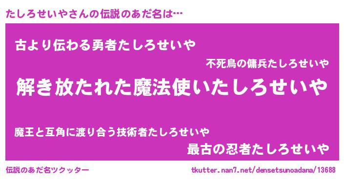 | 意味不明あだ名 | 『住所不定無職たしろせいや(7歳)』 |