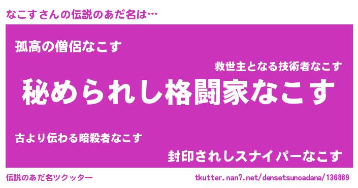 | 女子向けラノベタイトル風あだ名 | 『なこすの雑貨屋さん』 |