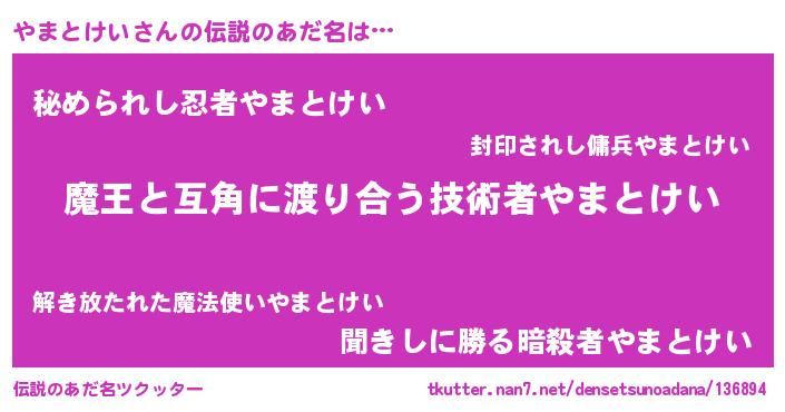 | ヒーロー風カッコイイあだ名 | 『愛の使者やまとけい』『ネオヤマトケイ』 |