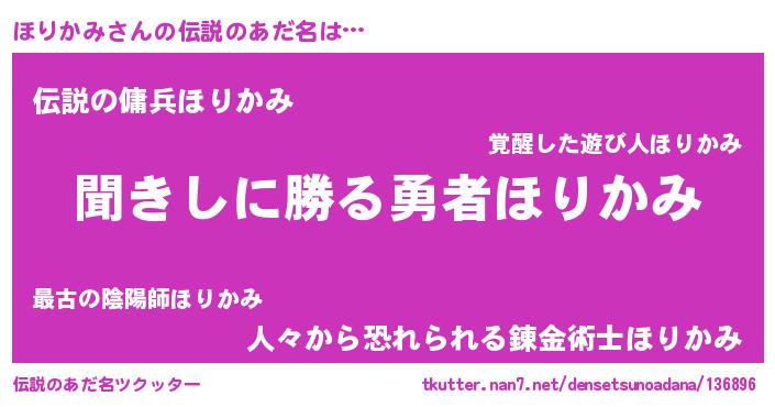 | 男性向けラノベタイトル風あだ名 | 『ホリカミスレイヤー』 |