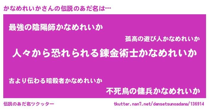 | 意味不明あだ名 | 『住所不定無職かなめれいか(85歳)』 |
