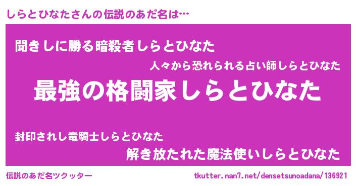 | 意味不明あだ名 | 『しらとひなたフォーエバー』 |