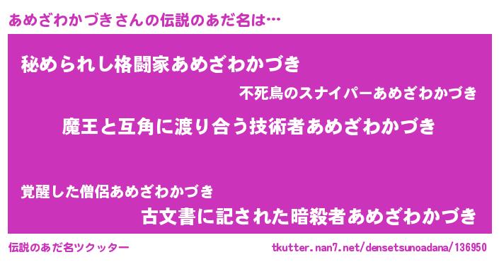 | 女子向けラノベタイトル風あだ名 | 『あめざわかづき恋絵巻』 |