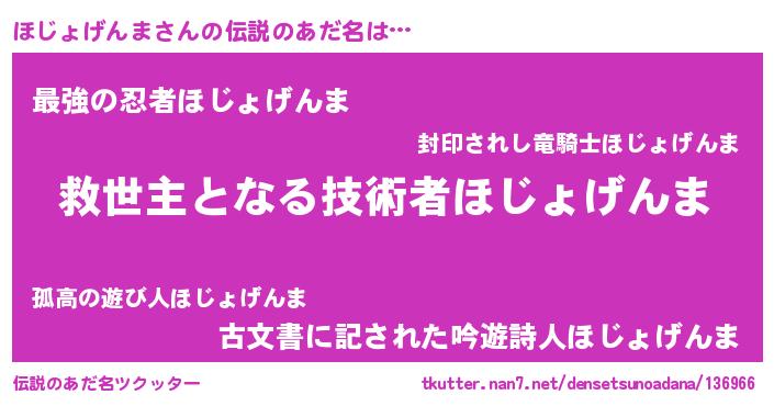 | 男性向けラノベタイトル風あだ名 | 『ほじょげんま~年齢イコール彼女いない歴の魔法使い~』 |