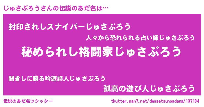 | 欧米人風あだ名 | 『じゅさぶろうクリステル』 |