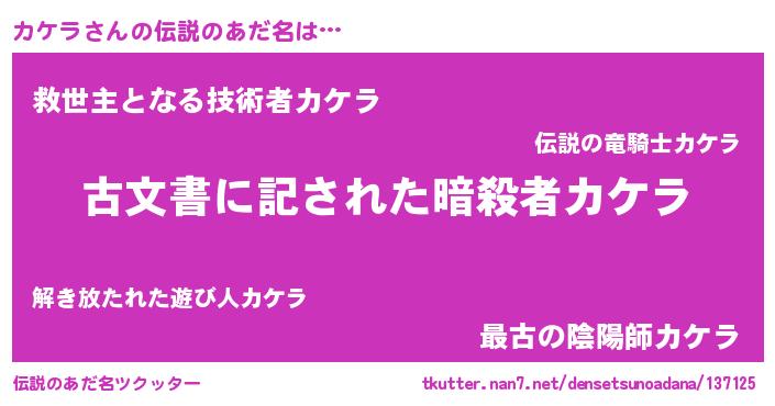 | ファンタジー風あだ名 | 『カケディッシュ』『ユリカケヴァット』 |