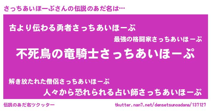 | 男性向けラノベタイトル風あだ名 | 『サッチアイホープアートオンライン』 |