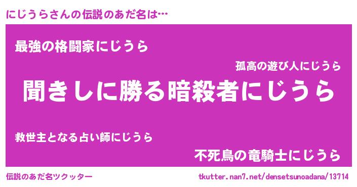 | ヒーロー風カッコイイあだ名 | 『ネオニジウラ』『ウルトラにじうらマン』 |