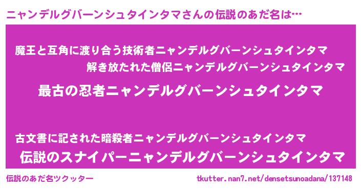 | ヒーロー風カッコイイあだ名 | 『ウルトラニャンデルグバーンシュタインタママン』 |