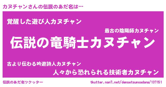 | 意味不明あだ名 | 『ペロリンカヌチャン』『自称カヌチャン』 |