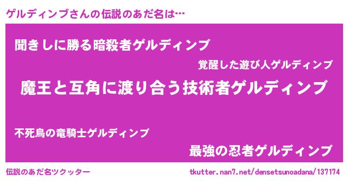 | ヘコむあだ名 | 『ゲルディンブ(笑)』『つくし』 |
