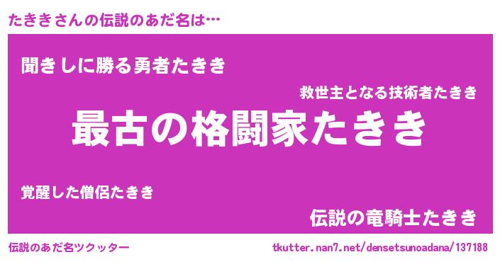 | ヒーロー風カッコイイあだ名 | 『ウルトラたききマン』『ネオタキキ』 |