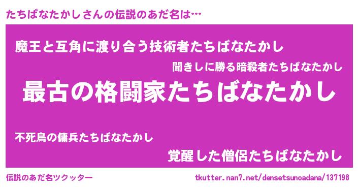 | 意味不明あだ名 | 『住所不定無職たちばなたかし(6歳)』 |
