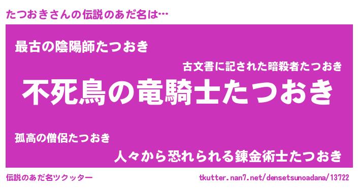 | 女子向けラノベタイトル風あだ名 | 『たつおき姫と円卓の騎士』 |