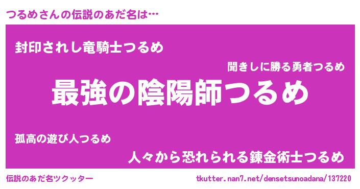 | ファンタジー風あだ名 | 『エターナルツルメー』『ツルフェル』 |