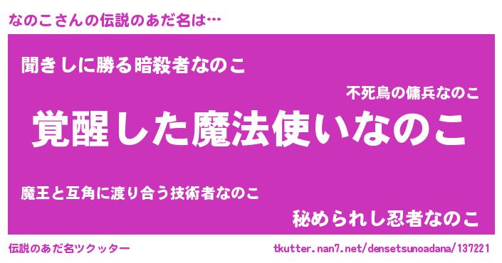 | ヒーロー風カッコイイあだ名 | 『幻影騎士ナノ』『ネオナノコ』 |