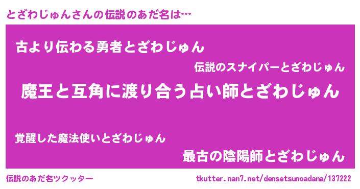 | 意味不明あだ名 | 『住所不定無職とざわじゅん(56歳)』 |
