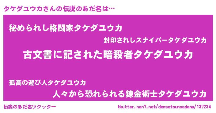 | ヒーロー風カッコイイあだ名 | 『ネオタケダユウカ』『仮面タケダー』 |
