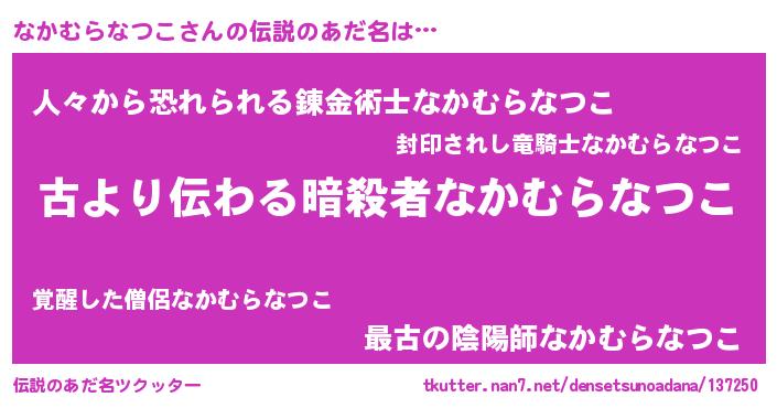 | 意味不明あだ名 | 『永久保存なかむらなつこ』 |