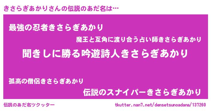 | 意味不明あだ名 | 『永久保存きさらぎあかり』 |