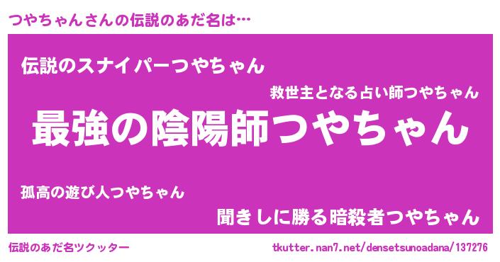 | ヒーロー風カッコイイあだ名 | 『究極戦士ツヤチャン』『ネオツヤチャン』 |