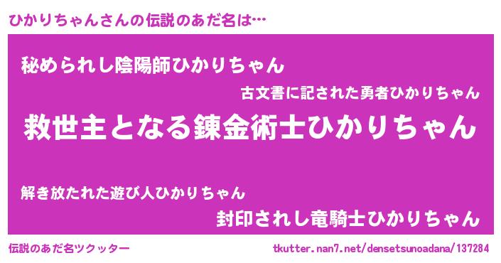 | ヒーロー風カッコイイあだ名 | 『慈愛の使者ひかりちゃん』 |