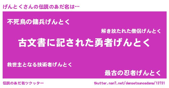 | ヒーロー風カッコイイあだ名 | 『ネオゲントク』『スーパーゲントク』 |