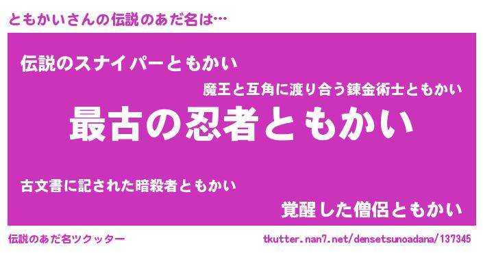 | ヒーロー風カッコイイあだ名 | 『最強戦士トモカイ』『スーパートモカイ』 |