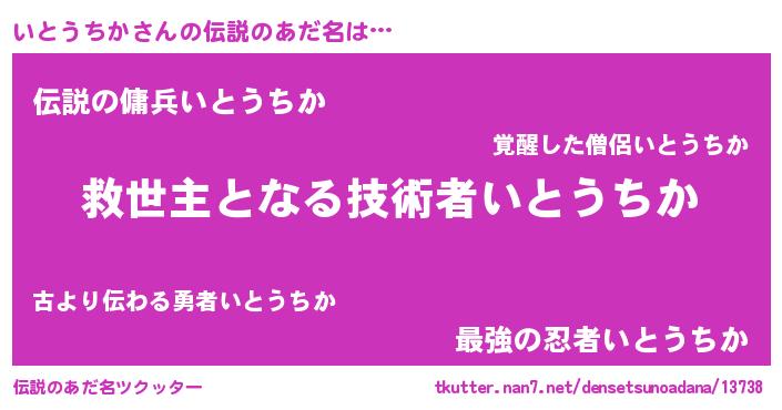 | ヒーロー風カッコイイあだ名 | 『天空の使者いとうちか』『天弓騎士イト』 |